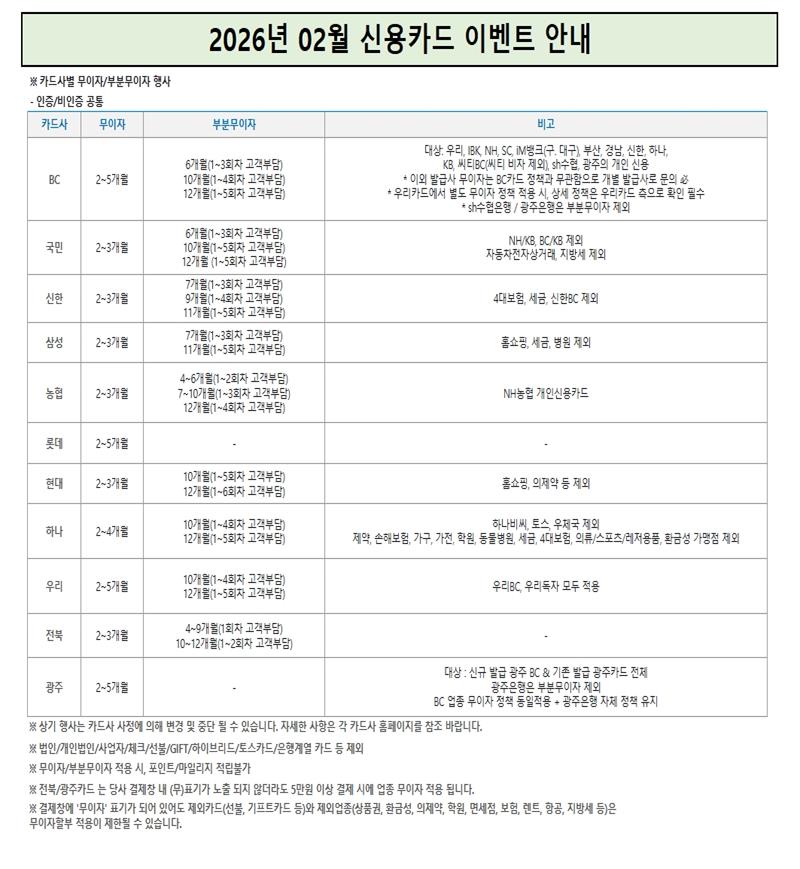 2026년 2월 카드할부 안내